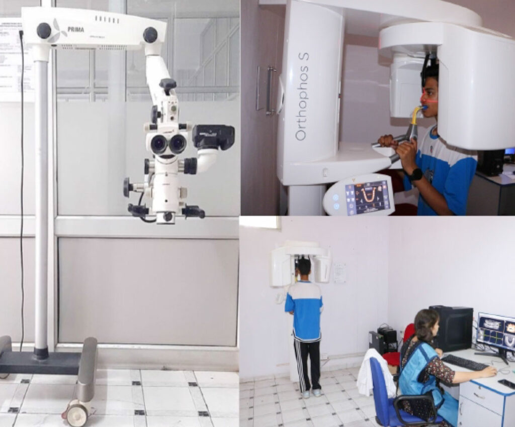 - Latest Diagnostic Facilities like Cone-beam computed tomography systems (CBCT), Orthopantomogram (OPG), Radio Visio Graphy (RVG), Intro Oral Camera & multiple X-Ray Machines.